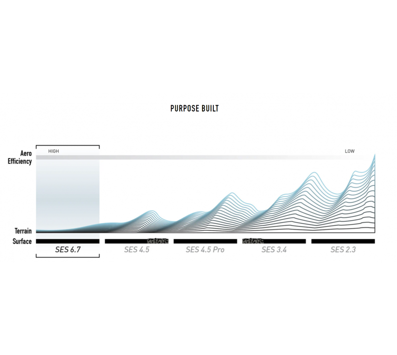 Striking the ultimate balance between weight savings, stability, aerodynamics, and rolling efficiency, the SES 6.7 defines Real-World Fast and raises the bar for modern aero wheel performance. Grams of rim, versus grams of drag, make the SES 6.7 the outright fastest wheel on the road. Once a rim goes beyond the 70mm depth, aero efficiency rapidly tapers off and the additional weight quickly begins to neutralize the marginal aero gains that the deeper rim provides. These are the learnings from more than a decade pursuing the ultimate Real-World Fast aero wheelset. Letting our experience, CFD, and the wind tunnel guide us, we landed on the sweet spot of aerodynamics, weight, and stability to create a wheelset thatgoes head-to-head in the wind tunnel with the very best time trial and triathlon wheels on the market. Couple that with an impressively light sub-1500 gram weight, superior stability, along with a high-volume design, and you end up with a wheelset that defines Real World-Fast. The SES 6.7 has been aerodynamically optimized around a labeled 27mm tire since data shows unequivocally that in real-world riding conditions, a higher volume tire provides more speed, confidence, and control. As such, we developed the SES 27 tire to be the high-volume race tire for the modern road cyclist. Featuring a 23mm internal rim width, the SES 6.7 can be paired with a 25mm tire, but for those wanting to decrease rolling resistance and maximize speed, a 27mm-28mm tire is the optimal labeled tire width. Like the rest of the SES wheel line, the SES 6.7 has been optimized for road tubeless performance and features a hookless bead design that allows for the precise rim dimensions required to achieve the best tubeless performance. To further improve tubeless tire and rim reliability, this aerodynamic carbon fiber wheelset features ENVE’s patent pending Wide Hookless Bead, a design element at the leading edge of the rim that provides a more forgiving surface, that when impacted, will reduce the likelihood of pinch-flatting a tubeless tire. Due to the refined and lightweight construction of the SES 6.7 and its sidewalls, this wheel is not suitable for off-road/gravel applications. Build Specs Hub Offering ENVE INNERDRIVE™ Premium Straight-Pull Dimensions FRONT REAR Depth 60mm 67mm | |